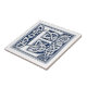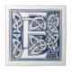 A beautiful, decorative embossed celtic letter illuminated with grey dragon heads on a velvety dark blue background.