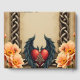 Celtic elegance with a heart and wings. An elegant, decorative frame chraacterised by Celtic knotwork. A vibrant red heart stands out as a central element at the bottom of the design. Within the heart is a Celtic knot symbol, symbolising connection and protection. The heart is flanked by dark, feathered wings, giving it a majestic and protective appearance. Delicate peach blossoms with yellow centres are arranged on either side of the heart.