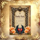 Celtic elegance with a heart and wings. An elegant, decorative frame chraacterised by Celtic knotwork. A vibrant red heart stands out as a central element at the bottom of the design. Within the heart is a Celtic knot symbol, symbolising connection and protection. The heart is flanked by dark, feathered wings, giving it a majestic and protective appearance. Delicate peach blossoms with yellow centres are arranged on either side of the heart.
