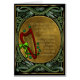 A greeting card for St. Patrick's Day that's worthy of keeping & framing! The stunning original artwork on the cover by digital artist, Leslie Sigal Javorek, features a Mahogany Celtic Harp laced with flowing green ribbons & shamrocks set against a faux bronze medallion alongside of an original Irish style blessing, all framed w/ intricately entwined green vines. The cover text and inside greetings can be kept as is, else modified or cleared in part or altogether by you for that personal touch.