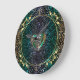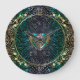 Celtic Heart Mandala In Green and Gold Original Round Clock. A gold trimmed Celtic Heart Knot in a colourful metallic mix of green, gold and purple in the centre of a green, blue, lavender and gold mandala over black or your choice of background colour with gold floral decor. Celtic knots are a traditional Celtic art form, notably chraacterised by having no beginning and no end, that symbolise eternal love and the never-ending cycle of life. They have become a favourite symbol in many cultures and civilisations around the world and with many practitioners of magic or mysticism today. The Celtic Heart knot is an endless knot in the shape of a heart and represents eternal and endless romantic love.