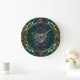 Celtic Heart Mandala In Green and Gold Large Clock