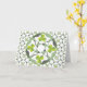 Perfect for St. Patrick's Day, this greeting card is embellished with a Celtic inspired pattern of interlocking curved shapes in muted green hues is interspersed with brighter green shamrocks or three leaf clovers and a larger version of the graphic with clover shapes that symbolise the Christian Holy Trinity.