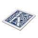 A beautiful, decorative embossed celtic letter illuminated with grey dragon heads on a velvety dark blue background.