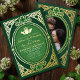 Celebrate love in style with this elegant Celtic Knot Claddagh Shamrock Wedding Green Invitation. The design features an emerald green background with a Celtic knot design with shamrocks and a Claddagh, perfect for an Irish-themed wedding celebration. NOTE: The gold featured on the back of this invite is NOT real foil and is printed in flat colors.