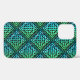 An iPhone 12 Case with a blue-green Celtic knot repeated tile pattern against a black background. Not an iPhone 12? No worries, it's also available for other device types =)