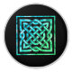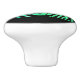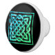 A ceramic knob of a blue-green Celtic knot design against a black background.