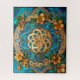 Celtic Knot Teal Blue Gold Flowers Knotwork Jigsaw Puzzle