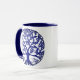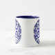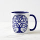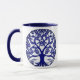 Mug in a stylised, Celtic knot, tree of life design in dark navy / indigo blue, on a white background
