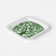 Paper plates in a stylised, Celtic knot, tree of life design in dark emerald Green on a white background