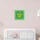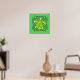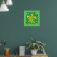 Sea turtle with a Celtic knotwork pattern shell and a celtic knot background. Embossed style, green and yellow colours.