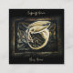 An aerial view of a small cream coloured dragon resting atop intricate Celtic knot work carved in tones of brown, black, and grey stone. Set against a deep black backdrop.