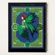 A red haired fairy all in green with green Celtic knot work all around.