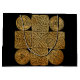 An intricate Celtic knot work cross with eternal spirals and trinity knots adorns an ancient parchment
