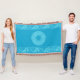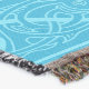 Border of Celtic knot work intertwined fish design in shades of blue, with a large circular fish design medallion in the centre