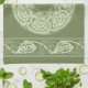Border of Celtic knotwork intertwined swimming fish design in shades of green, with a large circular swimming fish design medallion in the centre