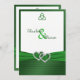 This emerald green and white FAUX satin pleats wedding invitation has a PRINTED ON ribbon with a pair of PRINTED ON diamonds an emerald jewel brooch on it . There is a front text area that you can change out to suit your needs. All the text is customisable and so are the paper choices. If you require any other items in this same design, please email your request to niteowlstudio@gmail.com. Existing matching items are shown below.