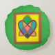 A round cushion with a print of my drawing of a Celtic knot with a modern twist-a love knot.