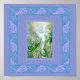 Delicate watercolor of a beautiful mermaid playing with several fish, with a Celtic fish design border.