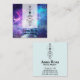 Making up the background of this spiritual metaphysical card is a universe with stars and galaxies. Some of the colours are purple, turquoise, navy blue and pink. This celestial metaphysical spiritual cosmic background can be described as artsy, new age and mystical. A beautiful watercolor of cosmic outer space and universe nebula star filled background make up this amazing business card. This modern unique card is as chic and feminine as well as it is strong and masculine.