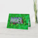 Celtic knot in green stained glass is the background for this Noel holiday card.
