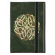 A traditional ancient Celtic ornament, showing four dragon- or snakelike creatures entwined in Celtic knots to form an intricate circle. The ornament is textured in greens and tans on a background of dark green with decorative texture.