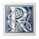 A beautiful, decorative embossed celtic letter illuminated with grey dragon heads on a velvety dark blue background.