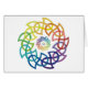 Colourful digital images of celtic knotwork rings in a rainbow spectrum of colour.