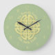 Celtic Round (Large) Wall Clock. Celtic design with Light green background. Background can be edited. All elements of this design are editable. To change background, choose "customise further" at the bottom select "choose a background colour". Space for Personalising.