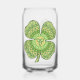 This classic four leaf clover overlays a concentric circle mandala featuring layers of Celtic weaves in multiple shades of green with a bit of orange for accent. This glassware is also available in stemless wine glass and rocks styles.