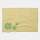 This classic four leaf clover overlays a concentric circle design featuring layers of Celtic weaves in multiple shades of green with a bit of orange for accent.