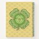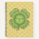 This classic four leaf clover overlays a concentric circle mandala featuring layers of Celtic weaves in multiple shades of green with a bit of orange for accent.