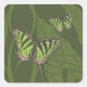 This design features a swallowtail butterfly with pink and green markings and a Celtic weave on the wings and body. One wing shows the weave on the black and the other on the pink and green markings.