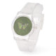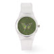 This design features a swallowtail butterfly with pink and green markings and a Celtic weave on the wings and body. One wing shows the weave on the black and the other on the pink and green markings. This watch is available in a variety of colours, sizes, and styles, including sizes for both kids and adults.