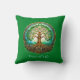 Pillow in a stylised Celtic Tree of Life, intricately detailed with intertwining branches and roots forming a circle, surrounded by ornate Celtic knotwork. The vibrant green leaves and golden-brown trunk symbolise harmony and interconnectedness