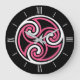 Celtic Triskele Ornament, Fuchsia, Black and White Large Clock