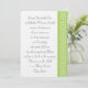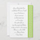 This elegant wedding invitation features a bright peridot green border along the right edge of the card with a white Celtic weave made up of stylised hearts. The left features plenty of space for all of the details of your special event with some sample text in place that can be customised to fit your needs. A large Celtic Weave heart in pastel green adorns the back to add a final touch of class.