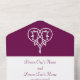 Bring touch of elegance to your event with this all-in-one wedding invitation and RSVP card. On the inside you will find a white Celtic weave heart on a rich wine background above a section with some sample text that can be customised for your special day. The lower section of the invite features a removable, postcard sized piece that has some sample RSVP text sitting above a wine border with a Celtic weave pattern made up of intertwined hearts decorating the bottom. Outside, a similar Celtic weave border on wine can be found below the areas where you would add stamps, standard, and return addresses for both the invitation as a whole and the returnable RSVP section. The flap used to fold over and seal the card has the larger Celtic weave heart on a rich wine background with a sample set of initials that you can customise for a final personal touch. Be sure to check out the rest of the Celtic Weave Hearts in Wine set for other coordinating products, including return address labels.