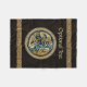 Richly intertwined Celtic knots creating the shape of a wolf and surrounded by a wreath of knots, in turn framed in more intricate patterns. A great piece of culture, history and heritage, all over a background of dark brown (chocolate) simulated old leather.