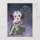 A rather vampire -like winged fairy creature is sitting next to an intricate celtic cross tombstome in a misty cemetery.  The colours and general feel to this one is very pretty - I love it!  This is my own original acrylic painting.