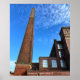 A stunning photograph of Centenary Mill Chimney, in the city of Preston, in the United Kingdom. A towering chimney against a blue sky with wisps of clouds.