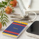 Three-color design with a main center stripe and smaller side stripes. Clean lines in three colors for your key chain. Add your name or a quote at the bottom and additional information on the back. This variant is the retro solid blue, yellow and red version.
