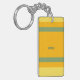 Three-color design with a main center stripe and smaller side stripes. Clean lines in three colors for your key chain. Add your name or a quote at the bottom and additional information on the back. This variant is the bright orange, yellow and green version.
