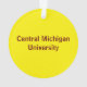 Michigan upper and lower peninsulas in gold and maroon, the colours of Central Michigan University. On the back it says," Central Michgian University" with a bright yellow background.