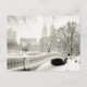 This fine art photo features a beautiful winter landscape in Central Park, New York City in classic black and white. Snow covers Bow Bridge, one of Central Park's most famous works of architecture. The towers of San Remo sit in the distance as seen through the bare branches of trees heavy with freshly fallen snow. Manhattan is magical in the winter especially when it snow and this image captures that cosy, magical feeling: as if you are glancing in a gorgeous New York City snow globe!