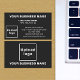 Centre aligned style black business card for your customers or clients to easily find your business address and contact information. Customise it by uploading your business logo, typing your business name, your name, your title, address, phone number, e-mail and website or social media page. Please check the appearance of the front and back sides after uploading logo and typing texts. If the appearance is pleasing to you, you can place your order now. If you need to resize or reposition the logo and texts, please adjust in the design tool. You can also change the background colour, font colour and font style in the design tool.