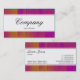 An attractive business/profile card template with an edged centre band and a script font. Company details on the front with name and contact details on the back. Customisable.