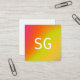 A square business card template with a simple clean design. A solid colour on the front with initials aligned to the left around 1/3 from the top. With name, profession/job title along with telephone, email and website address on the reverse side. This template is also a good starting point for further customisation.