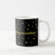 Sweet coffee mug for the person that means the MOST in the WORLD to you! yellow stars scattered on a black background, with the following text around the centre: you are the centre of my universe