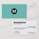 Centre Spot Monogram - Black on Turquoise 6bc3bb Business Card